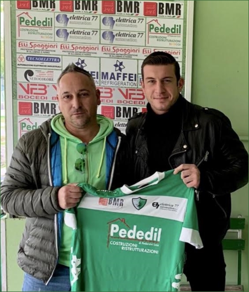 Nella foto: da sinistra, il vicepresidente biancoverde Luca Pederzini e il nuovo arrivato Nicolas Bovi.