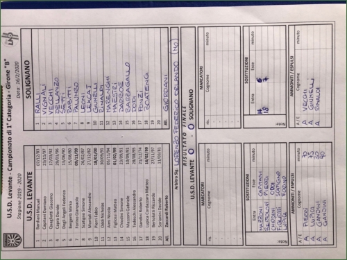 17/02/2020 - Partita avara di emozioni allo stadio Cantoni dove si affrontano Levante e Solignano. Leggero predominio territoriale dei padroni di casa durante le prime fasi di gioco, il tutto non consente di sbloccare il risultato e si traduce solamente in una traversa colpita dal numero 11 Oddi. Nel secondo tempo prevale la paura ed i padroni di casa appaiono più rinunciatari. Il Solignano prende coraggio e anche grazie ai cambi di Mister Giordani si affaccia qualche volta in più dalle parti di Bardiani senza comunque impensierirlo mai seriamente. La partita langue ed il risultato si trascina sullo 0-0 fino al triplice fischio a sancire la fine delle ostilità.