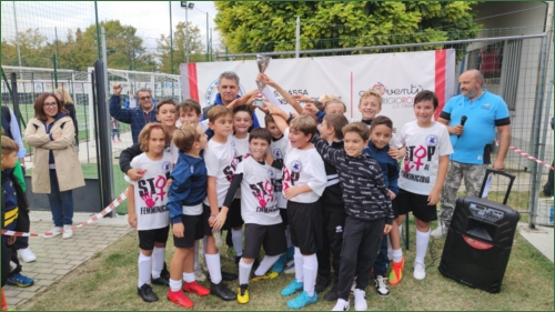 29/09/2022 - Sulle maglie della formazione del ds Tito Cofano c’era scritto “Stop al femminicidio”. Assegnati 5 titoli nel torneo “Saranno campioni” e altrettanti nel “Amici della Bassa”. Consegnati anche 30 premi individuali a cannonieri, giocatori e portieri migliori