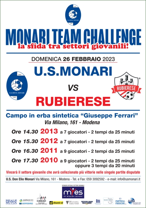 21/02/2023 - Le annate dai 2010 ai 2013 svolgeranno dei test match contro le rispettive annate della Don Monari.