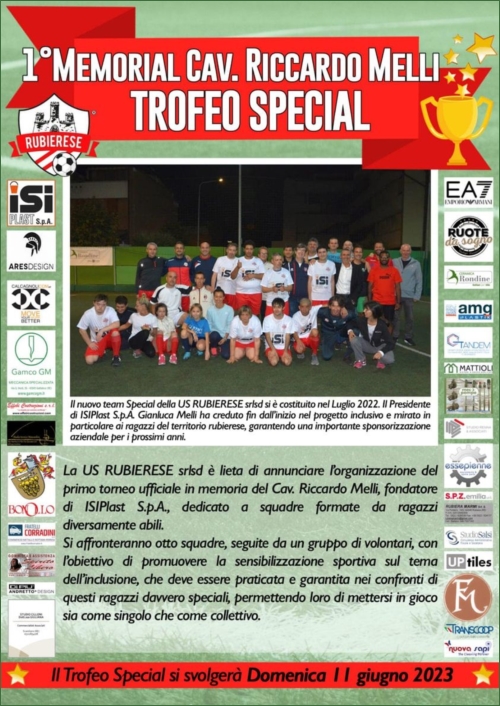 05/06/2023 - Domenica 11 giugno allo stadio “Valeriani” dalle 14,30 alle 18,30 si disputerà il 1º Memorial Cav. Riccardo Melli Trofeo Special. Otto formazioni di atleti diversamente abili, tra cui i nostri ragazzi del Progetto Inclusione, si sfideranno in quello che sarà un bellissimo pomeriggio di sport, divertimento e agonismo.