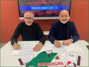 FOTO E DIDA: Il Montecchio entra a far parte di Provincia Granata: qui la firma fra il presidente Massimiliano Palmia e il vice presidente granata Giuseppe Fico.