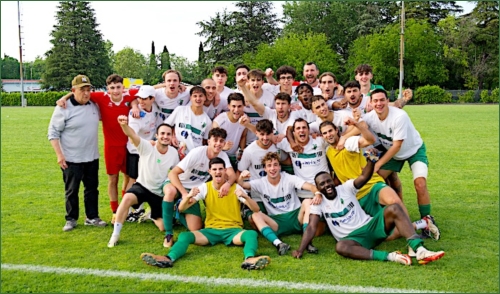 Nella foto, l'Arcetana mentre festeggia la vittoria e il ritorno in Eccellenza (immagine realizzata da Guido Rinaldi).