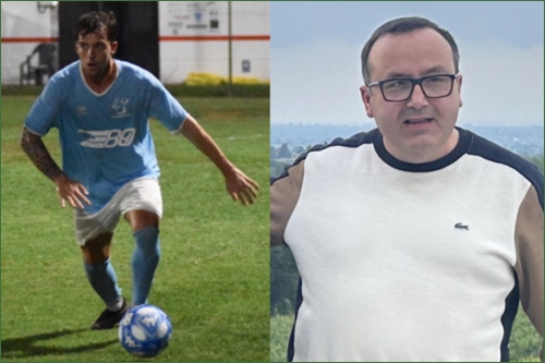 FOTO E DIDA: Enrico Marconi nell’amichevole della settimana scorsa contro il Carignano. Pochi giorni dopo si è infortunato. A destra il ds Bimbi
