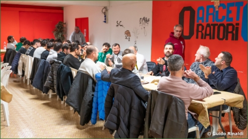 Intanto l'intero ambiente biancoverde ha fatto festa venerdì 13 dicembre, nei locali dell'Oratorio parrocchiale di via Pagliani ad Arceto: un ritrovo che la società ha organizzato per festeggiare sia l'imminente arrivo delle Festività natalizie, sia i pregevoli risultati che l'organico di Eccellenza ha ottenuto fin qui. Presenti ovviamente giocatori, staff tecnico, dirigenti e collaboratori, ma pure amici e simpatizzanti dell'Arcetana: oltretutto, non sono mancate autorità civili e religiose. Il tutto con un'apprezzata cena, predisposta dall'efficientissimo staff gastronomico biancoverde.