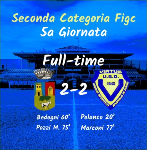 La cronaca: mister Chiozzi e il vice Andreoli cambiano le carte in tavola, pur mantenendo l’ossatura base del 4-3-3. In porta Corradini, in difesa Catellani sostituisce Ferretti, a centrocampo riecco Pagliani, mentre in avanti nel tridente c’è Federico Pozzi insieme a Polanco e Iotti. Nei locali di mister Orlandini figura Milziadi tra i pali; in difesa Zinani si occupa della corsia di destra, a centrocampo in regia Pomarico e Cantarelli, con Bedogni riferimento offensivo. Curiosità: in campo, entrambi con la casacca numero 7 da una parte e dall’altra, i fratelli Pozzi, Federico per la Virtus Bagnolo, Manuele per la Campeginese. L’avvio è di marca virtussina, pur senza grandi occasioni. Al 3’ tiro fuori bersaglio di Polanco dal limite, all’8’ è Federico Pozzi che si libera bene ma non inquadra lo specchio. Dopo 20 minuti, si sblocca la contesa: l’estremo difensore locale Milziadi su pressione di Iotti perde un pallone in piena area di rigore e per Polanco è un gioco da ragazzi appoggiare in rete il vantaggio ospite. La reazione dei padroni di casa non si fa attendere: minuto 27, bordata da fuori area di Zinani e palla che scheggia il palo alla destra di Corradini. Alla mezzora ancora Polanco si insinua in area e la sua conclusione viene rimpallata, forse con un braccio: l’arbitro lascia correre senza esitazioni. Al 35’ Marco Tondelli sciupa una grande occasione dentro l’area piccola dopo un cross perfetto di Manuele Pozzi, calciando incredibilmente alto. In pieno recupero, su punizione virtussina dalla distanza, Milziadi perde il pallone in uscita alta, ma Iotti si coordina male e non trova lo specchio della porta locale, rimasto praticamente sguarnito. Nella ripresa è ancora la squadra di Chiozzi a partire meglio: dopo 4’ Polanco di testa su punizione insacca, ma l’arbitro ravvisa un’irregolarità. Al minuto 8 sul destro di Federico Pozzi capita una doppia occasione, ma Milziadi riesce a salvarsi in entrambi i casi. E per la legge non scritta del gol sbagliato-gol subìto, ecco che al quindicesimo arriva il pari della Campeginese: Bortesi sbaglia in impostazione, regalando il pallone a Bedogni che punta Catellani e con un destro chirurgico supera un incolpevole Corradini. L’1-1 non scoraggia gli ospiti, che al 23’ con il subentrato Marconi hanno la possibilità di riportarsi in vantaggio: il suo destro da centro area però è strozzato e termina docile tra le braccia di Milziadi. Alla mezzora arriva la doccia fredda per la Virtus: cross perfetto di Galeotti dalla corsia sinistra e grandissimo gol di esterno destro al volo di Manuele Pozzi, che vale il sorpasso Campeginese. La Virtus però non si lascia abbattere e trova il pareggio appena due minuti più tardi: Marconi si procura un calcio di punizione vicino al vertice destro dell’area locale e su cross al bacio di Trivieri fulmina tutti di testa in piena area piccola. Dopo il 2-2 però, continuano le emozioni. Brancati al 39’ ha una ottima chance in mischia, in qualche modo si salva Corradini. Al quarto minuto di recupero invece la palla del 2-3 cade sul sinistro di Reggiani, che da solo in area calcia con troppa fretta e non impegna Milziadi. Finisce in parità.