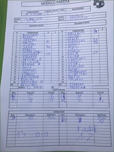 13/10/2019 - PRIMA CAT. GIR. C 5° GIOR. - VIRTUS CALERNO-REAL CASINA: 1-2