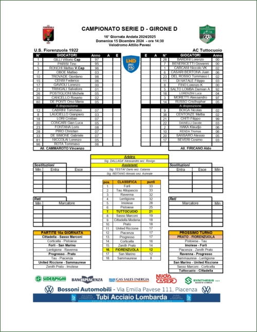 Tabellini Partite