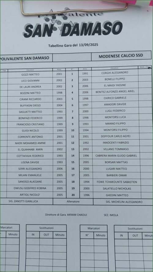 POLIVALENTE SAN DAMASO-MODENESE: 3-0