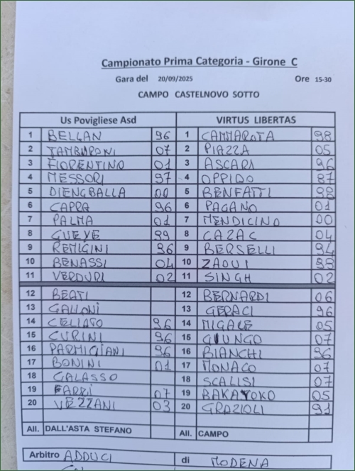 POVIGLIESE-VIRTUS LIBERTAS: 1-1