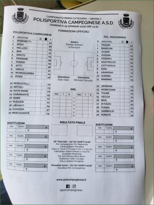 POL. CAMPEGINESE-MADONNINA: 0-3