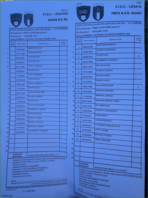 RUBIERESE-GUASTALLA CALCIO SATURNO: 1-1
