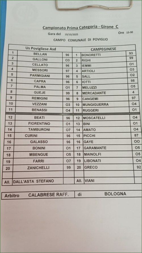 POVIGLIESE-POL. CAMPEGINESE: 5-1