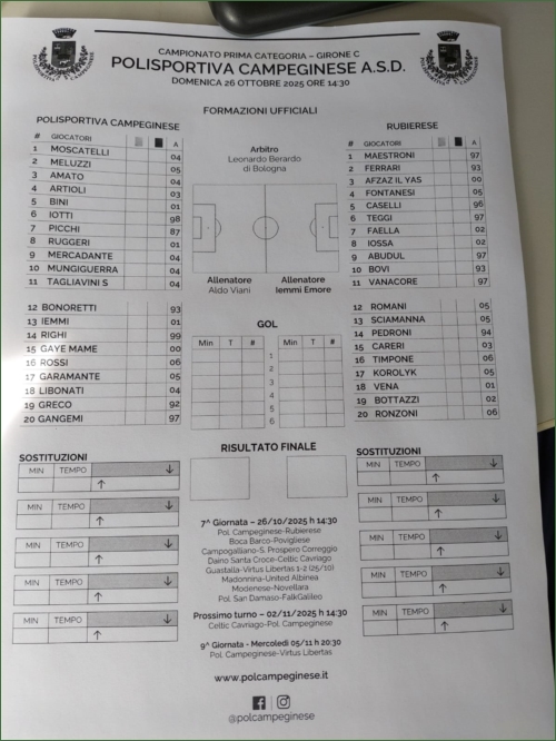POL. CAMPEGINESE-RUBIERESE: 0-3