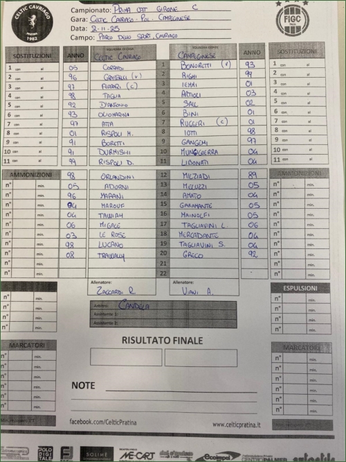 CELTIC CAVRIAGO-POL. CAMPEGINESE: 2-3