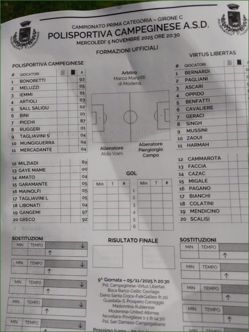 POL. CAMPEGINESE-VIRTUS LIBERTAS: 1-2