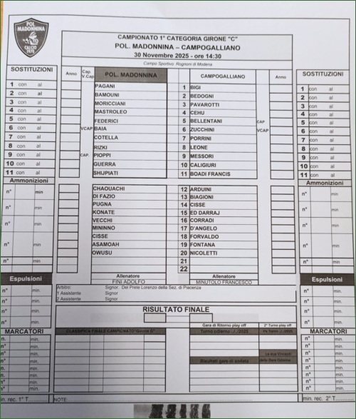MADONNINA-CAMPOGALLIANO: 0-2