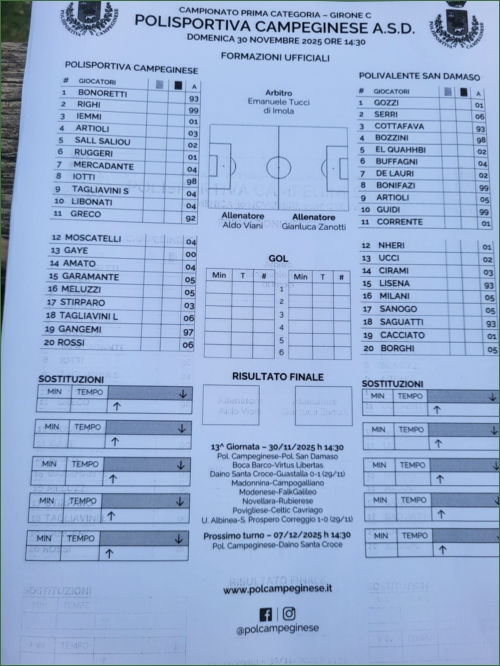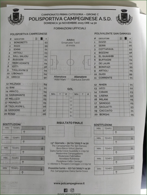 POL. CAMPEGINESE-POLIVALENTE SAN DAMASO: 0-4