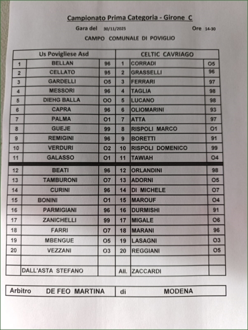 POVIGLIESE-CELTIC CAVRIAGO: 0-0