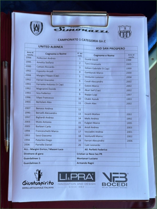 UNITED ALBINEA-SAN PROSPERO: 1-0