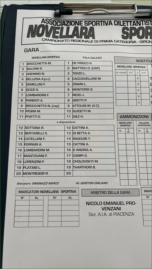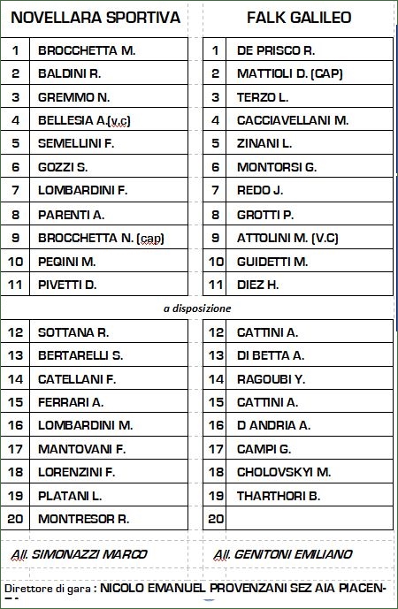 NOVELLARA SPORTIVA-FALKGALILEO: 2-5