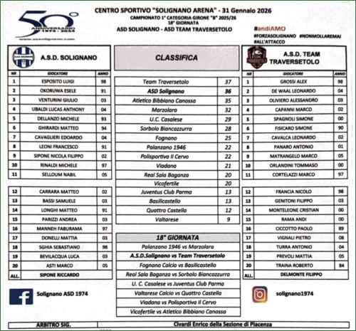 SOLIGNANO (PR)-TEAM TRAVERSETOLO: 4-2