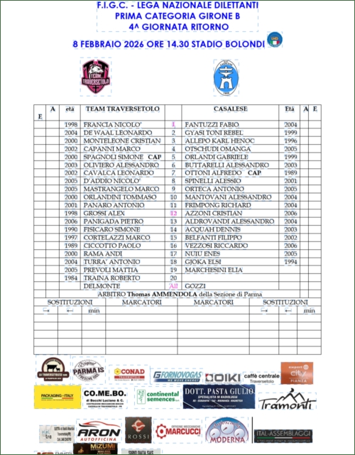TEAM TRAVERSETOLO-UNIONE CALCIO CASALESE: 2-2