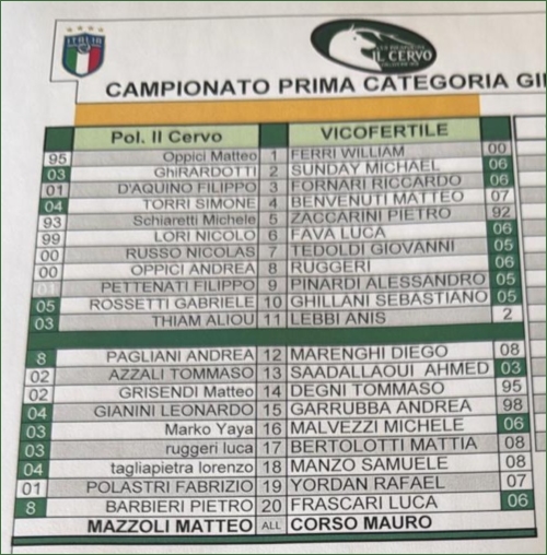 POLISPORTIVA IL CERVO-VICOFERTILE: 1-0