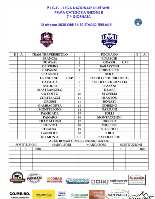 TEAM TRAVERSETOLO-FOGNANO CALCIO: 1-2