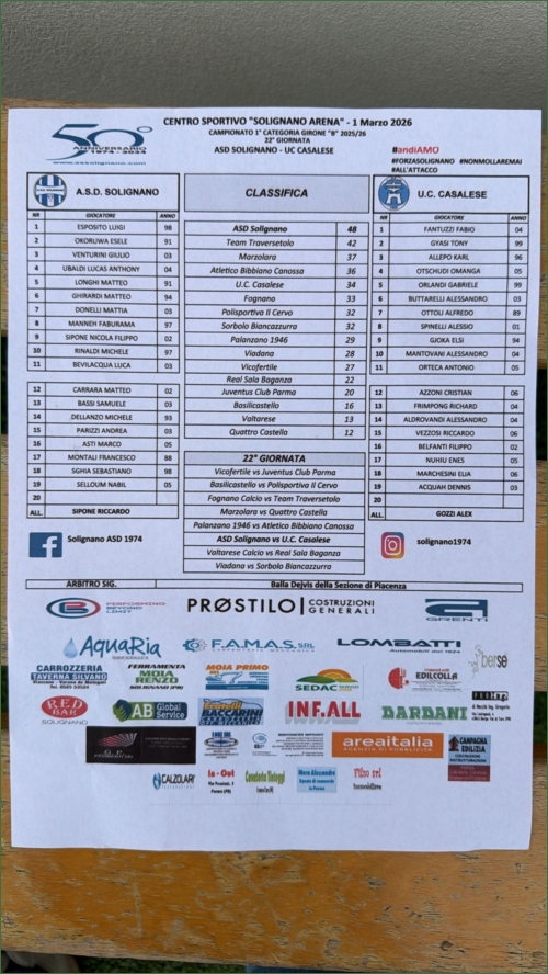 SOLIGNANO (PR)-UNIONE CALCIO CASALESE: 2-0