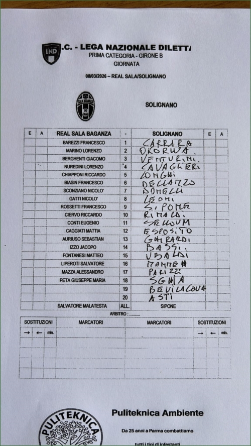REAL SALA BAGANZA-SOLIGNANO (PR): 1-2