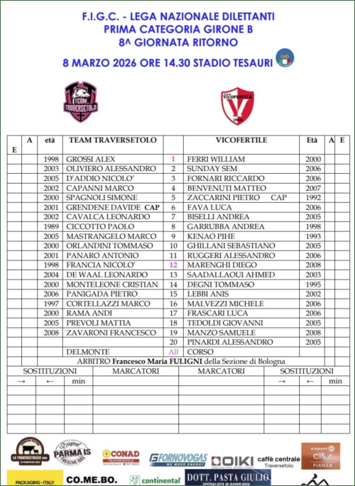 TEAM TRAVERSETOLO-VICOFERTILE: 3-0