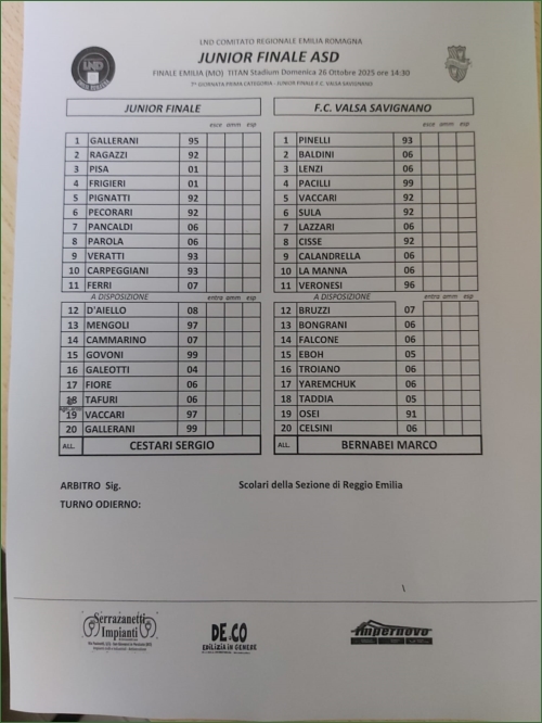 Tabellini Partite