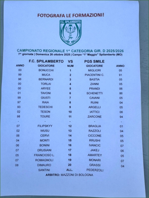 SPILAMBERTO-PGS SMILE: 2-0