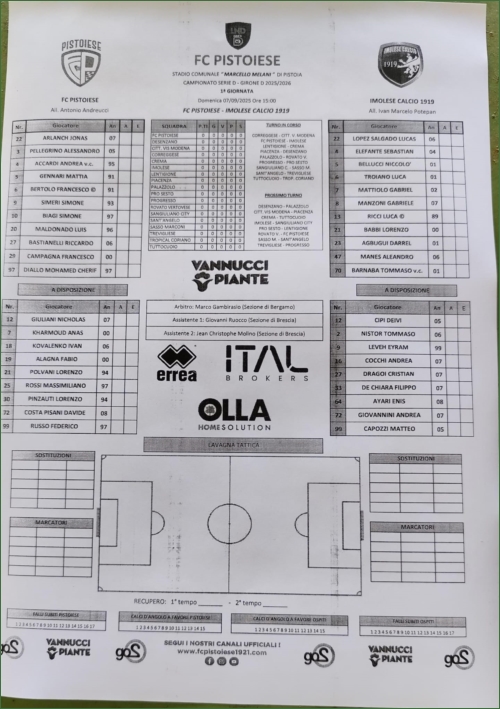 PISTOIESE-IMOLESE: 1-1
