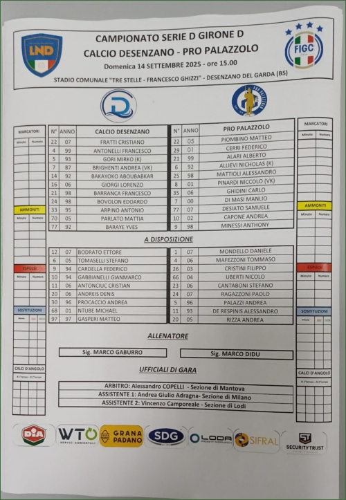 DESENZANO-PRO PALAZZOLO: 1-1