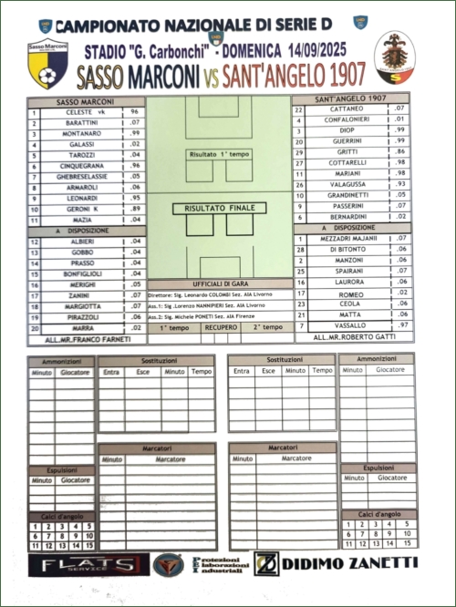 SASSO MARCONI-SANT'ANGELO: 2-1
