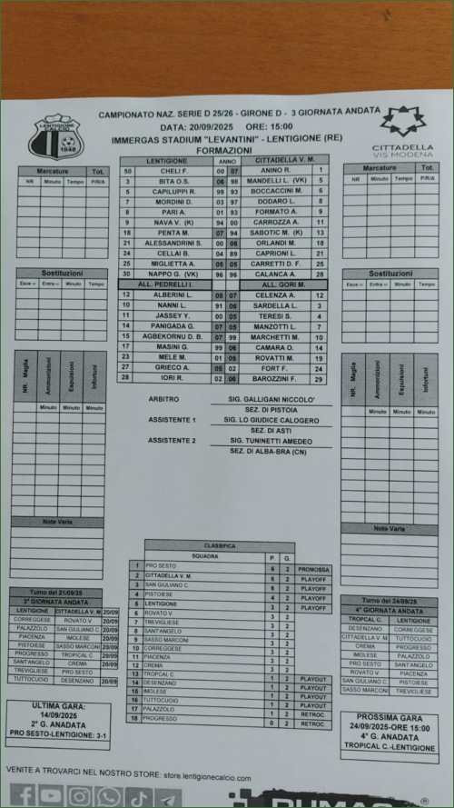 LENTIGIONE-CITTADELLA VIS MODENA: 1-0