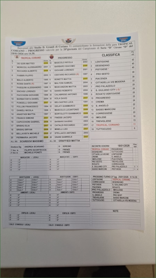 TROPICAL CORIANO-PROGRESSO: 0-0