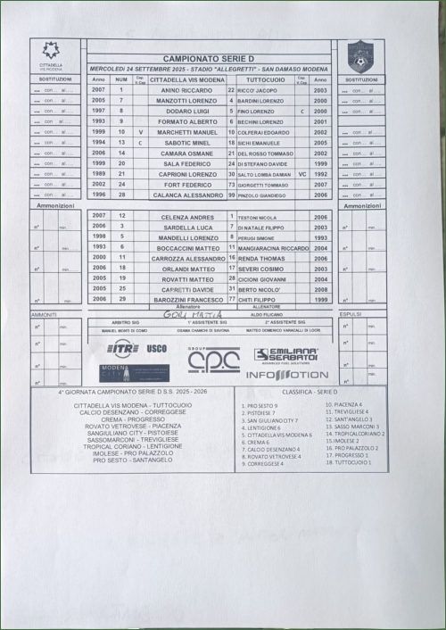 CITTADELLA VIS MODENA-TUTTOCUOIO: 2-1
