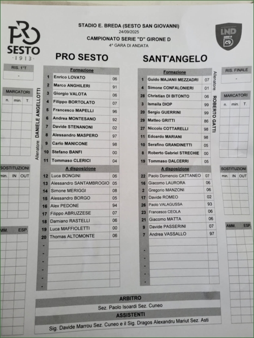 PRO SESTO-SANT'ANGELO: 0-0