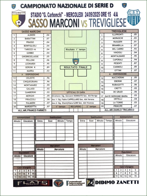 SASSO MARCONI-TREVIGLIESE: 0-1
