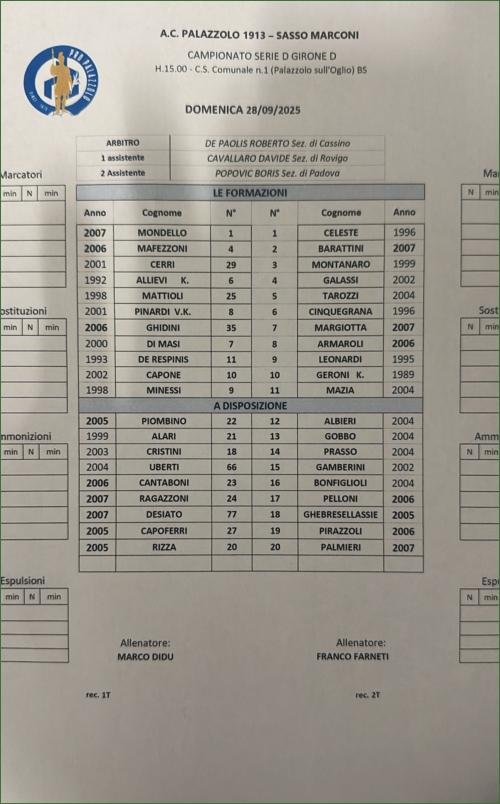 PRO PALAZZOLO-SASSO MARCONI: 1-0