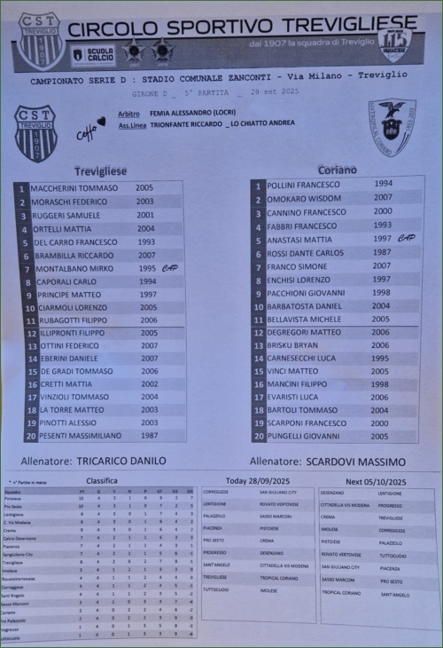 TREVIGLIESE-TROPICAL CORIANO: 1-2