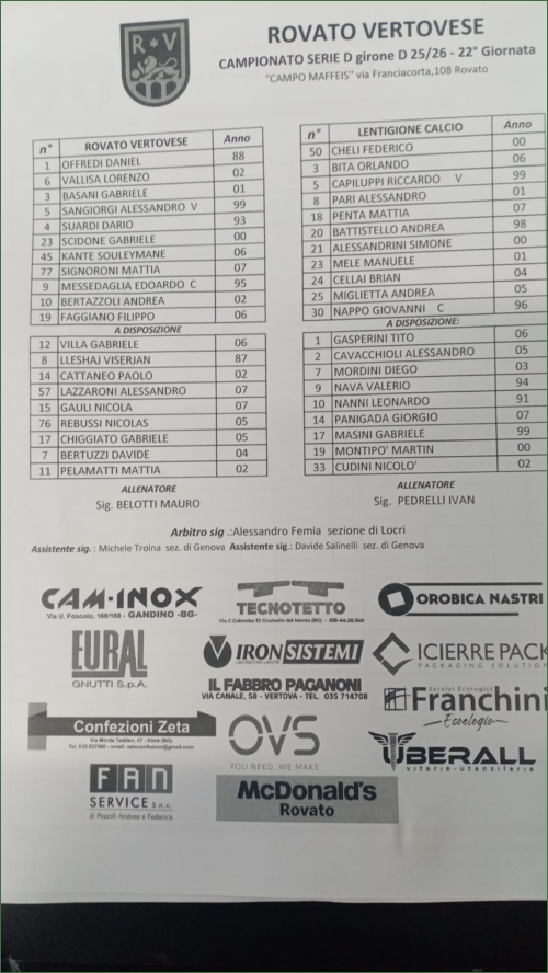 ROVATO VERTOVESE-LENTIGIONE: 3-1