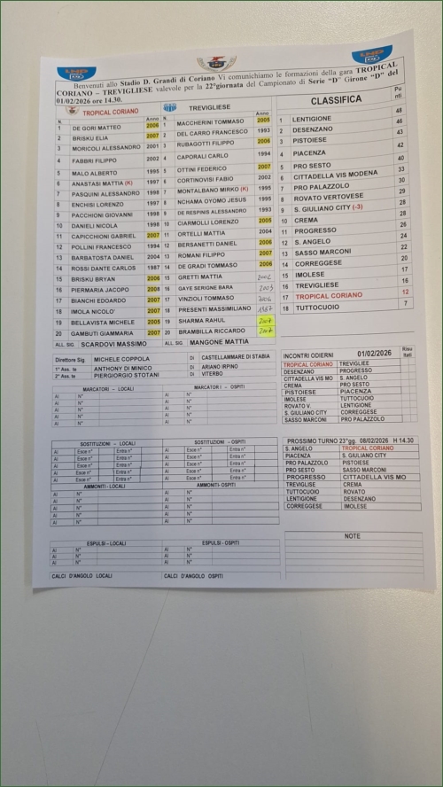 TROPICAL CORIANO-TREVIGLIESE: 1-0