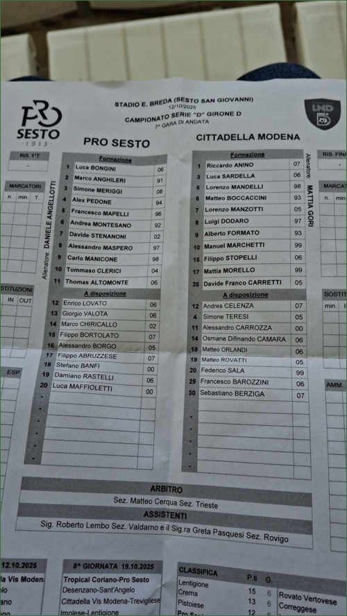 PRO SESTO-CITTADELLA VIS MODENA: 2-0