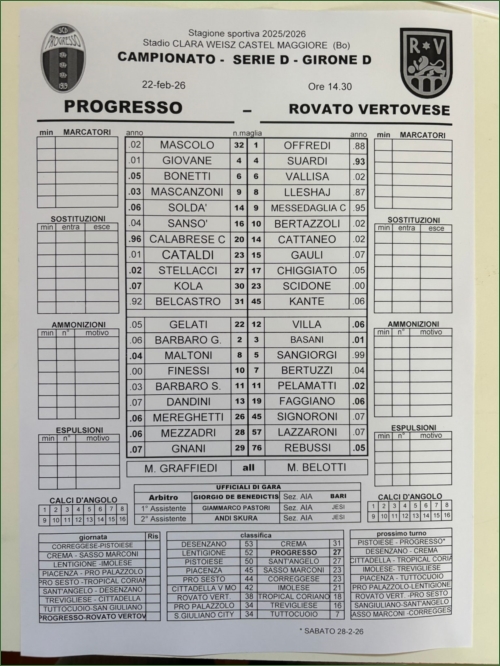 PROGRESSO-ROVATO VERTOVESE: 0-0