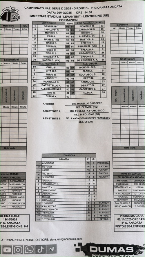 LENTIGIONE-PRO PALAZZOLO: 0-1