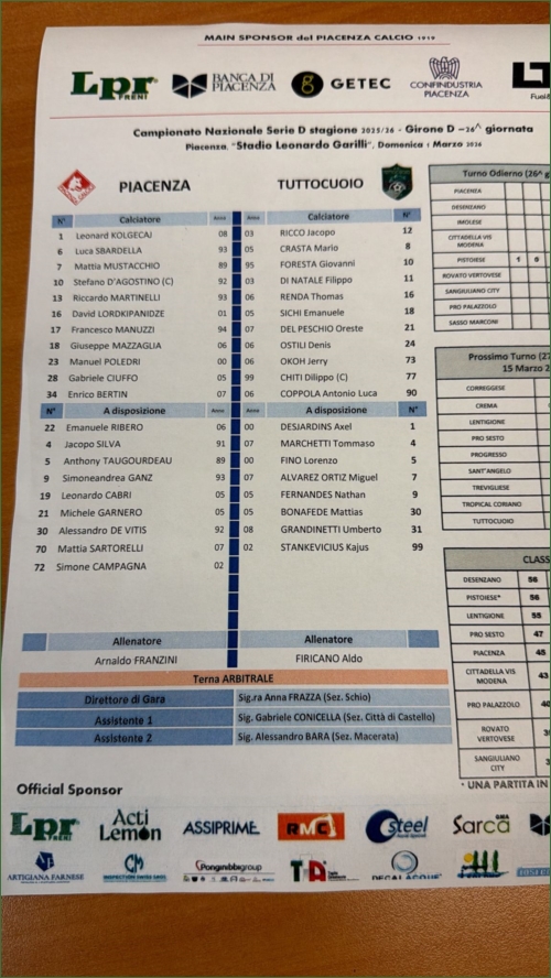 PIACENZA-TUTTOCUOIO: 4-0